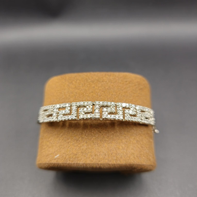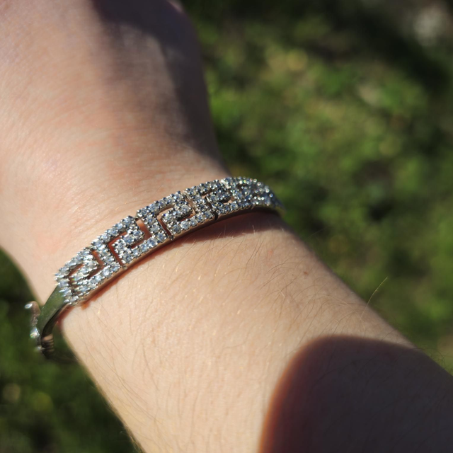Élégance classique garantie ! Ce magnifique bracelet jonc est fabriqué en Argent Sterling 925 et orné d'un motif intemporel de Clé Grecque serti de strass étincelants.