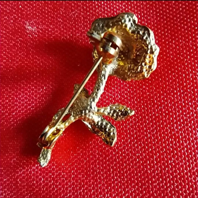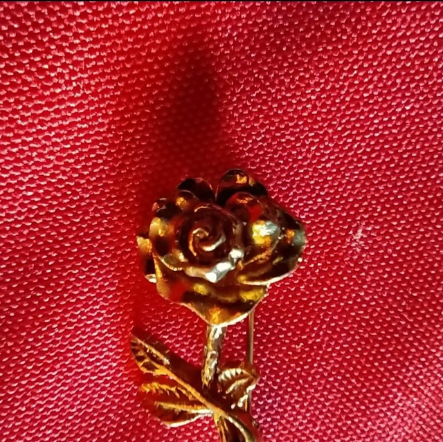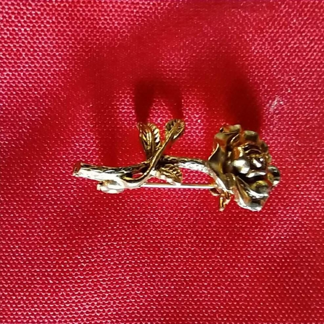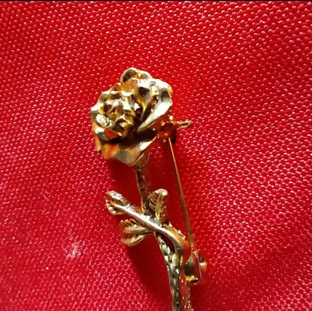 Petite broche vintage datant des années 70, cette adorable petite rose en métal doré donnera beaucoup de chic à votre tenue.