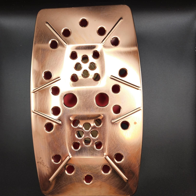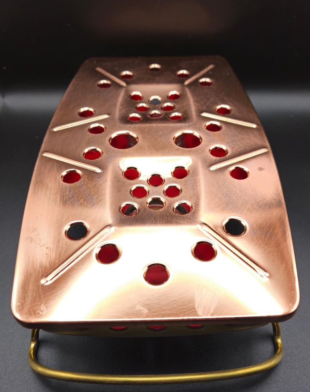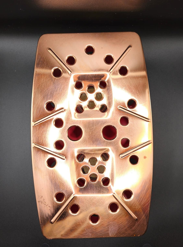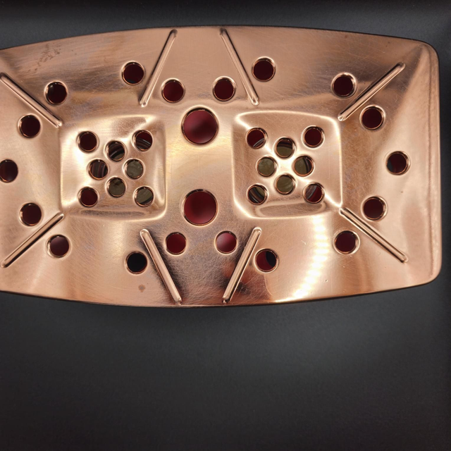 ●​Design Élégant : Magnifique plaque supérieure amovible en cuivre poli au motif géométrique perforé, offrant une esthétique raffinée et intemporelle.