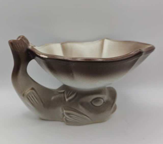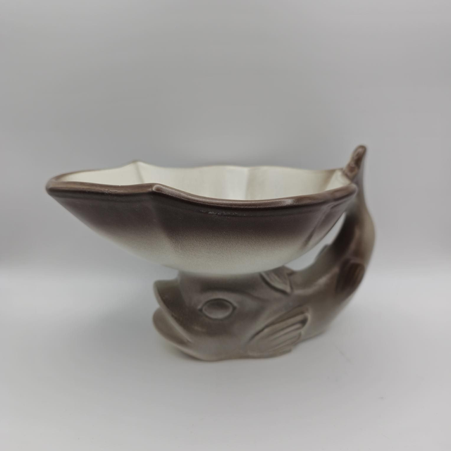 Couleur & Époque : Céramique émaillée aux dégradés de brun et de beige, typique des productions des années 1950-1970 (style Mid-Century).
