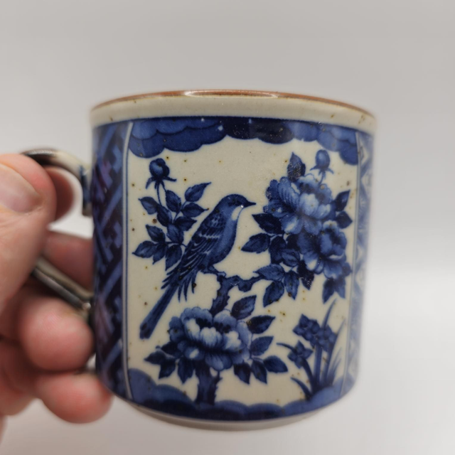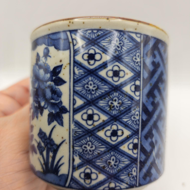 - Design : Décor floral raffiné bleu indigo représentant un oiseau parmi les pivoines, alternant avec des motifs géométriques traditionnels.