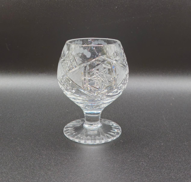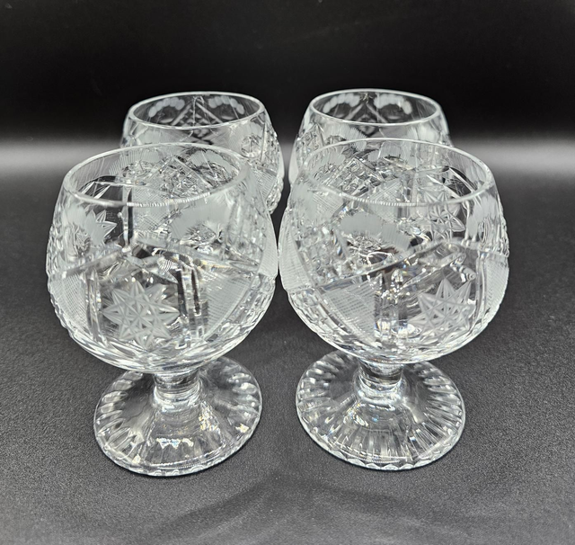Sublime ensemble de 4 petits verres en cristal de Bohême taillé main.