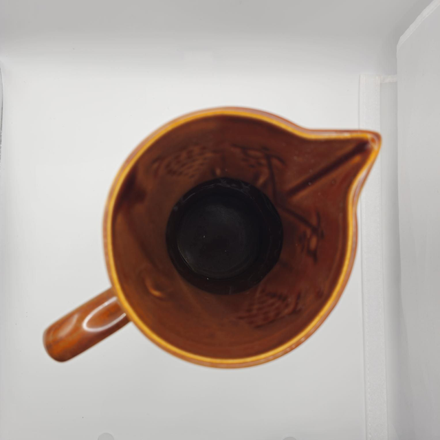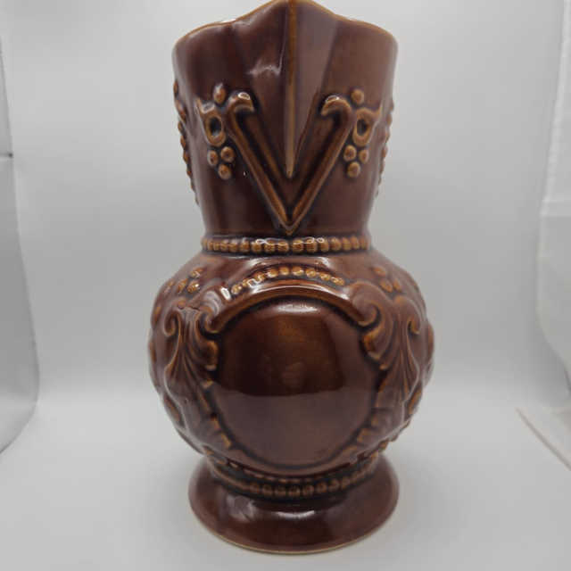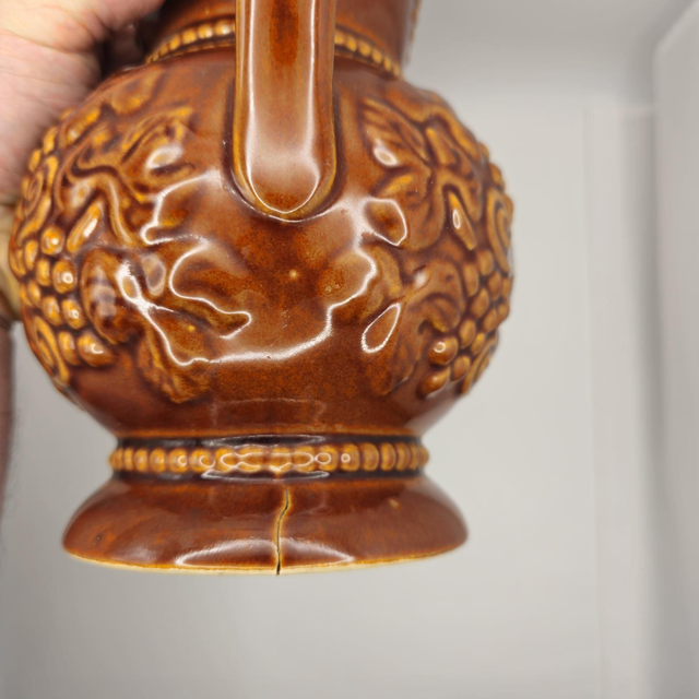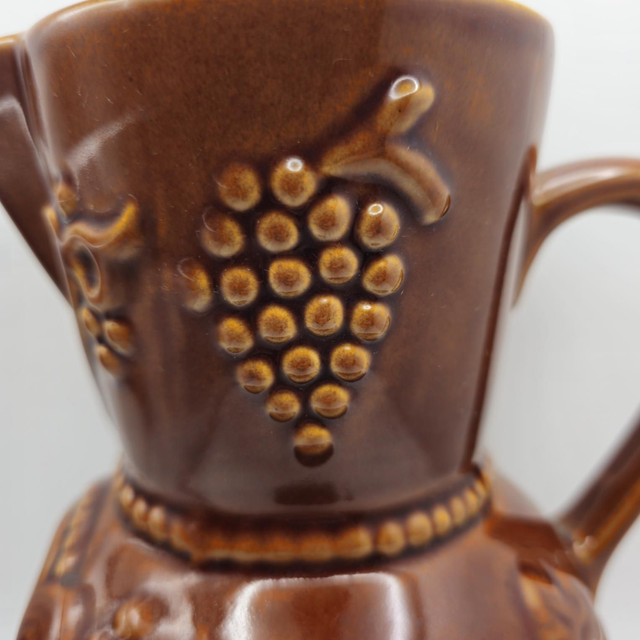 ​● Superbe pichet/cruche en céramique émaillée marron brillante, typique des années 60/70. Orné d'un riche relief de grappes de raisin et de feuilles de vigne. Style rustique français