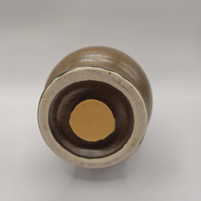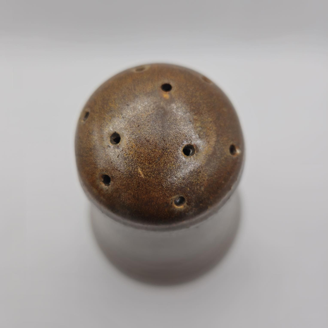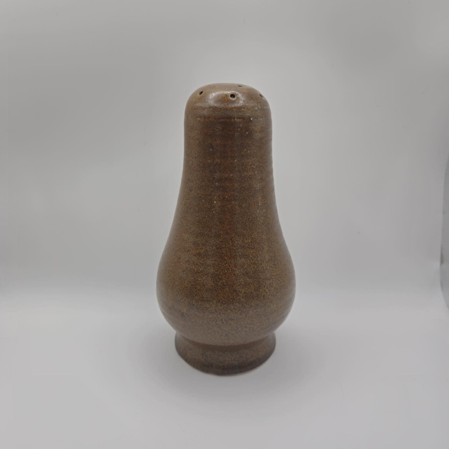 Ajoutez une touche rustique et chaleureuse à votre cuisine ou salle à manger avec cette salière en céramique (grès). Sa forme de gourde classique et sa glaçure marron ( années 60/70) en font un objet à la fois utilitaire et décoratif.
