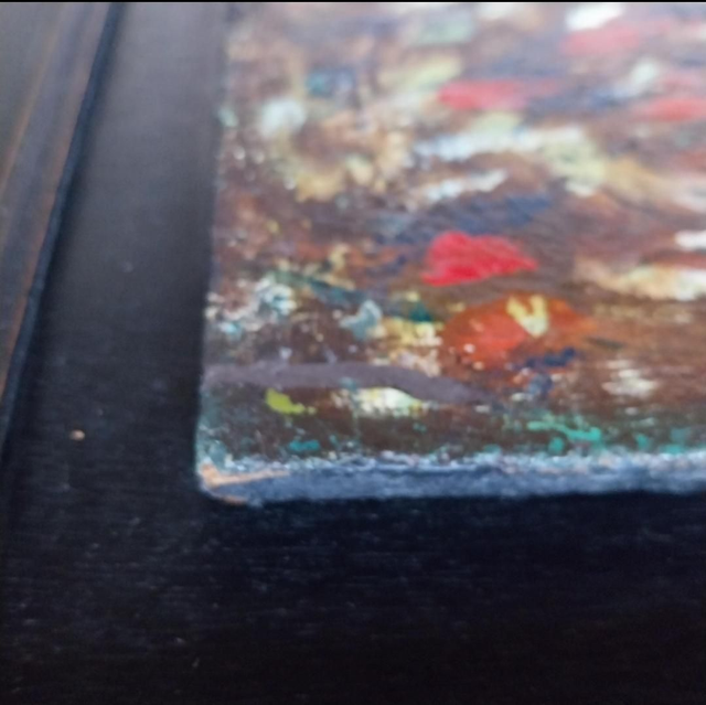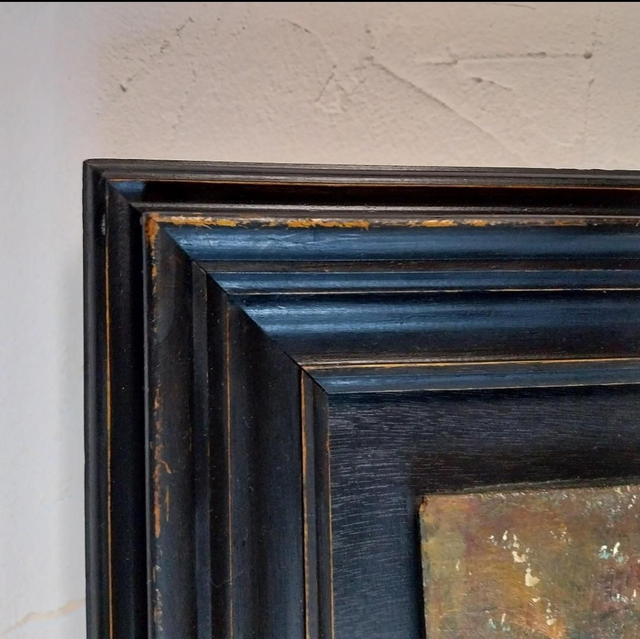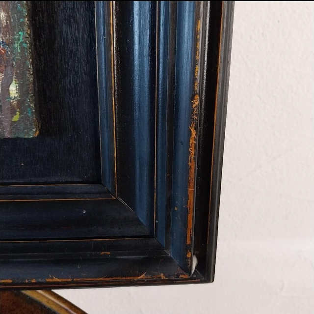 Technique : Huile sur bois, mettant en valeur des détails texturés et des contrastes puissants.