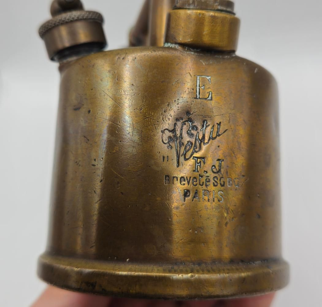 Inscriptions : "Vesta F.J. Breveté SGDG Paris" gravé sur le réservoir.