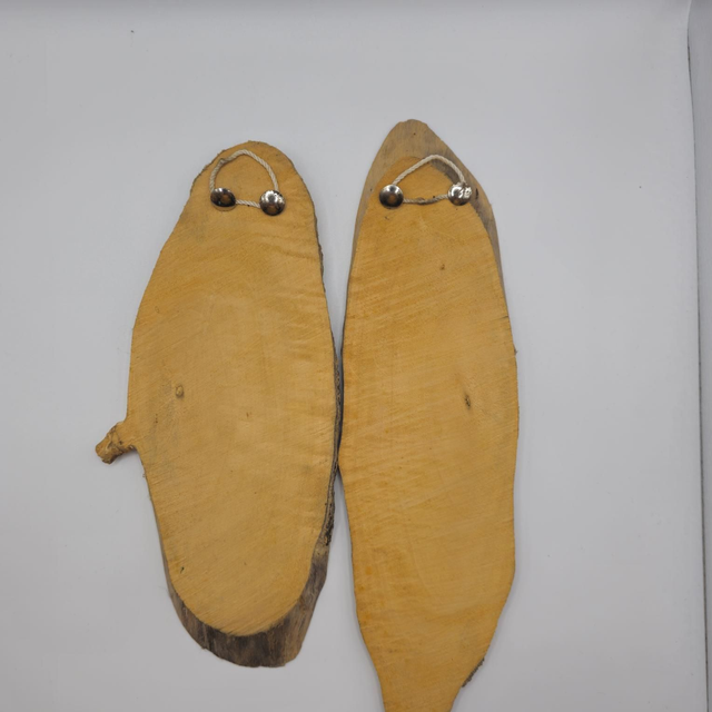 Authentique ensemble de deux pièces d'artisanat populaire, peint sur tranches de bois brut.