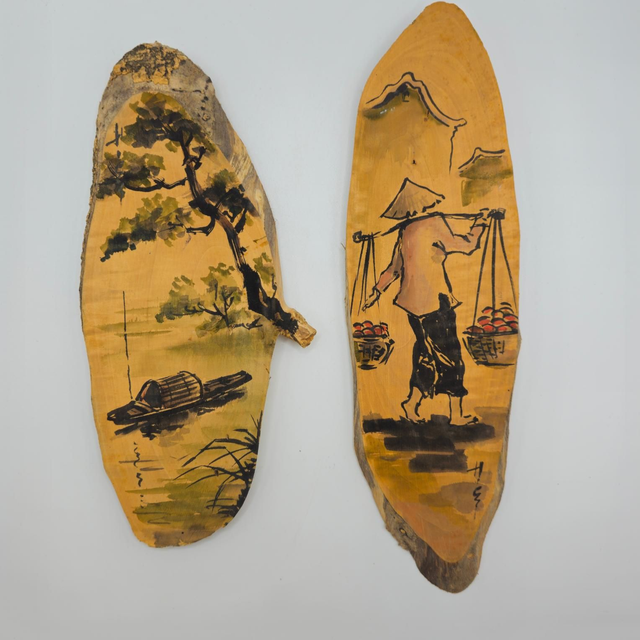 Lot de 2 tableaux, scènes Vietnamienne sur bois