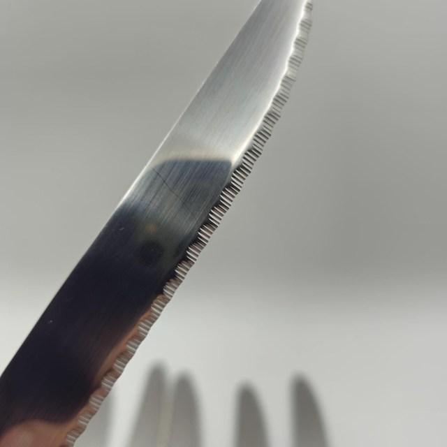 ●Lame : Acier inoxydable (Inox), micro-dentelée (pour une coupe efficace).