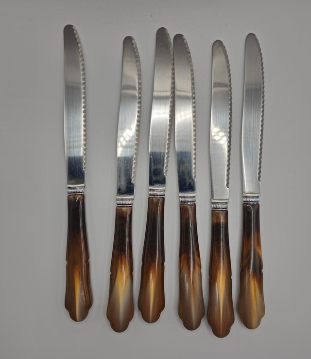 Magnifique lot de 6 couteaux de table PRADEL INOX, parfaits pour ajouter une touche de charme vintage à votre service.