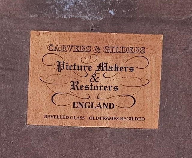 ●Étiquette d'encadreur anglais au dos (Carvers & Gilders), confirmant son assemblage historique.