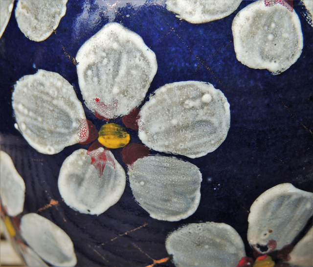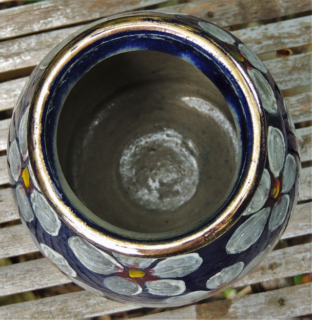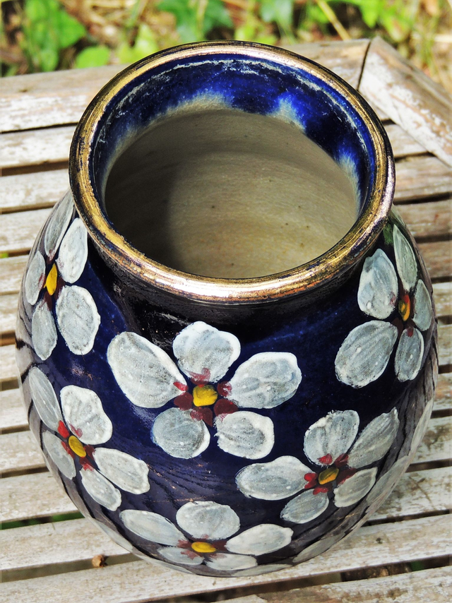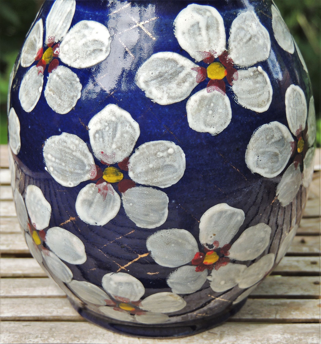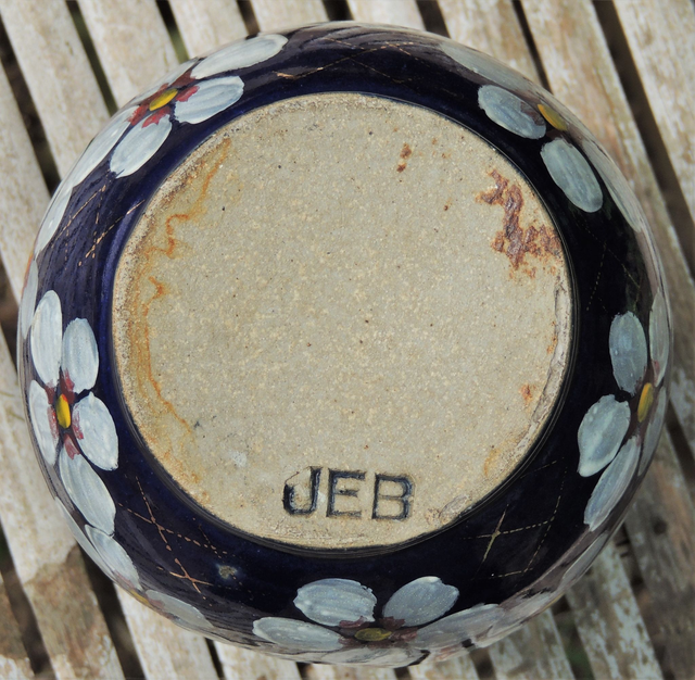 Adorable petit vase au décor floral, fait main , signé JEB.