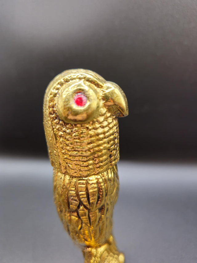 Boîte/Figurine Perruche Vintage Années 60 en Laiton Doré (Yeux Rouges). Pièce de décoration Mid-Century très tendance. Idéale pour secrets ou collection. Charme rétro garanti.