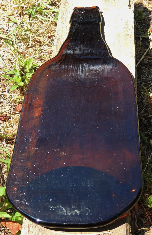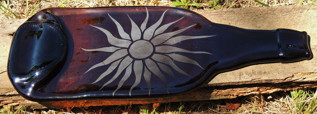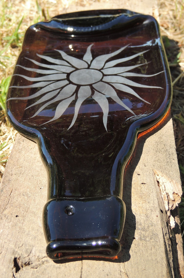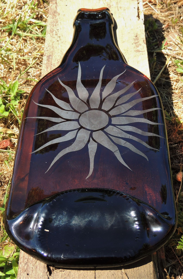 Originalité garantie avec cette petite planche apéro, fabriquée à partir d'une bouteille en verre aplatie.