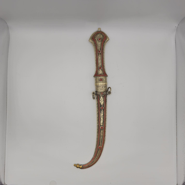 Ce magnifique poignard Jambiya incarne un puissant symbole culturel de la Péninsule Arabique (souvent associé au Yémen).