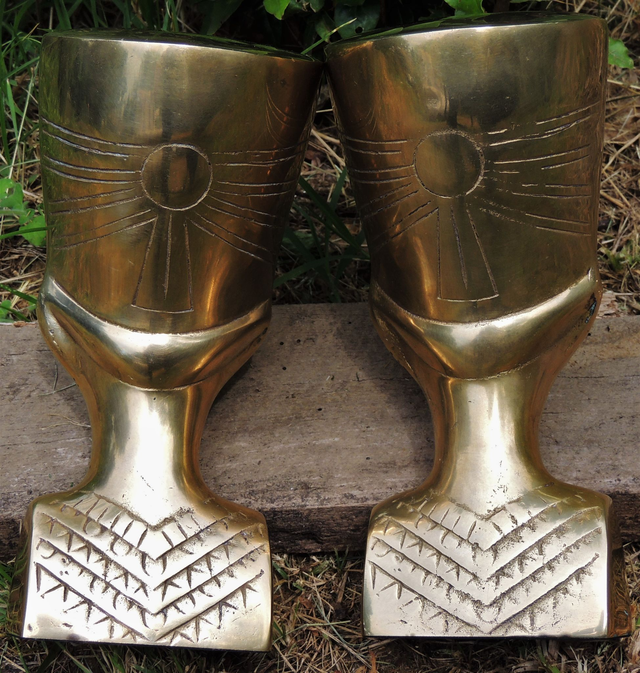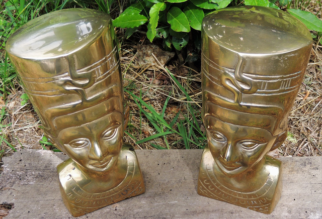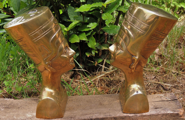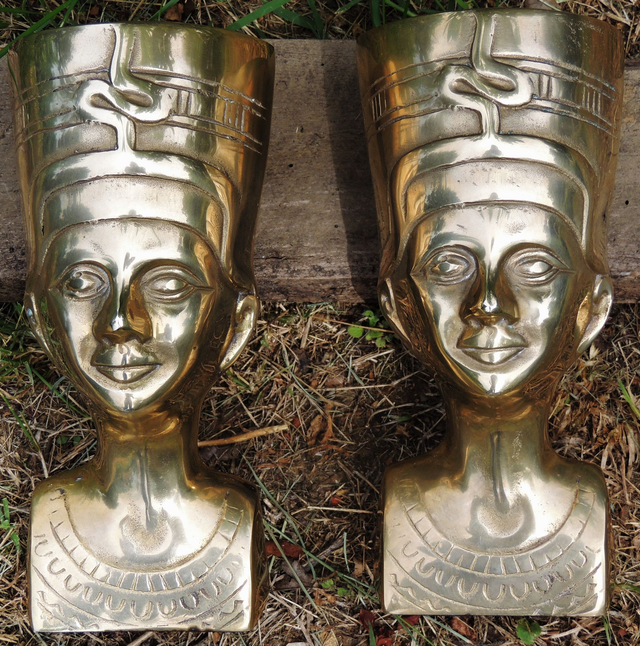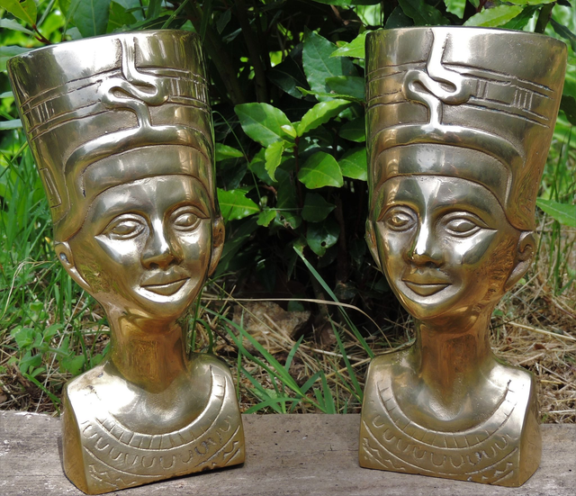 Super décoratif ce lot de 2 bustes de Néfertiti en laiton datant des années 70 .