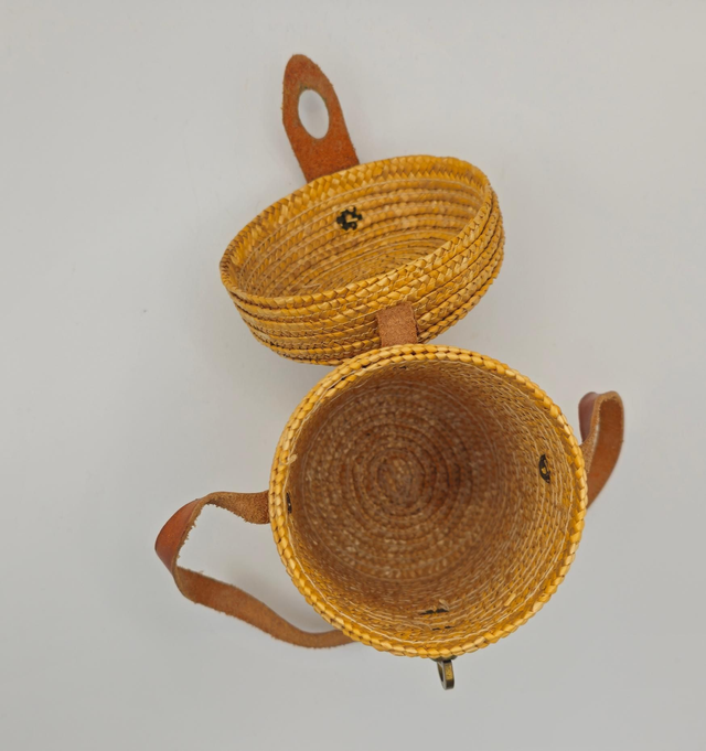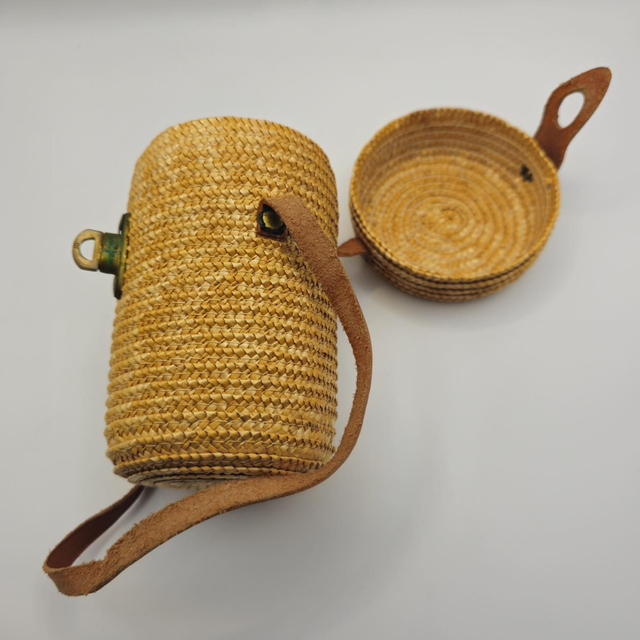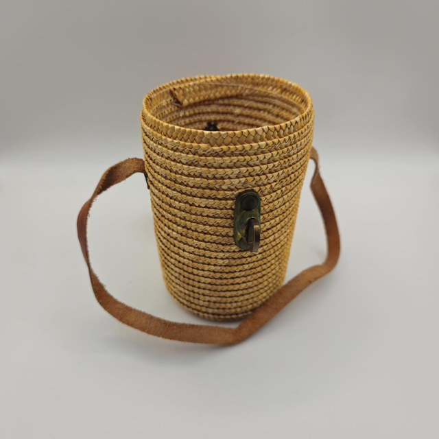 ●Petit panier cylindrique en fibres naturelles tressées, avec une belle patine.