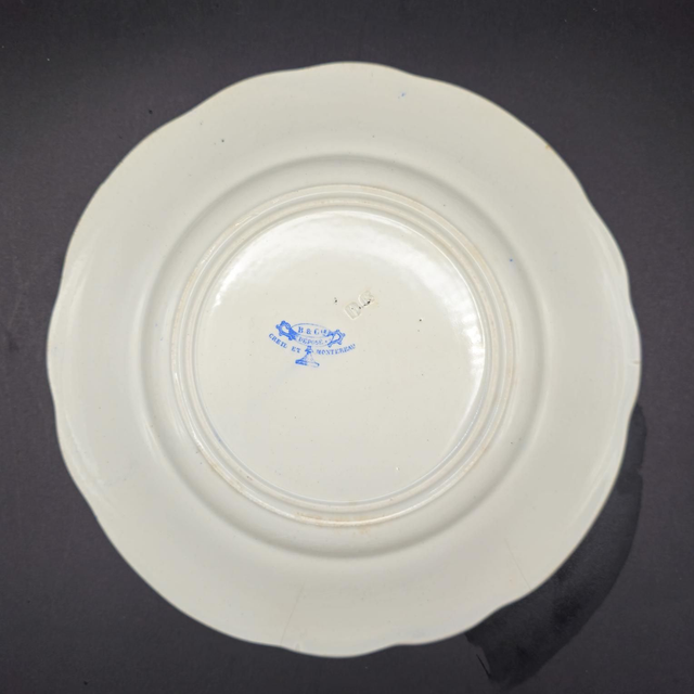 Faïence fine. Marque "B & G Cie DÉPOSÉ CREIL ET MONTEREAU" au revers. Idéale pour collectionneurs d'assiettes historiées et de faïences de Creil-Montereau.