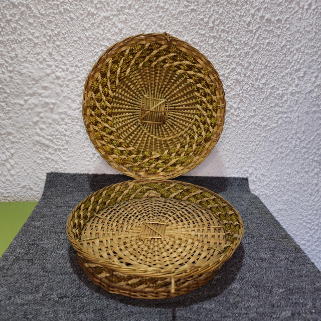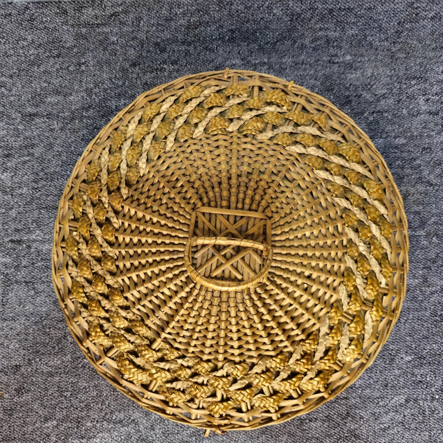 Matériaux naturels (osier/rotin/paille) et techniques artisanales.