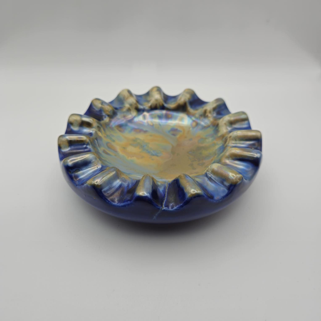 ​ Forme ronde élégante avec un bord très ondulé,style Poterie d'Art / Mid-Century.