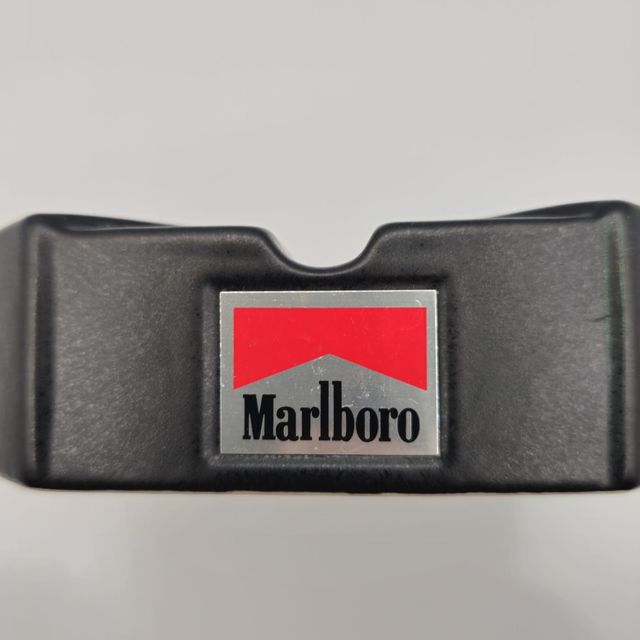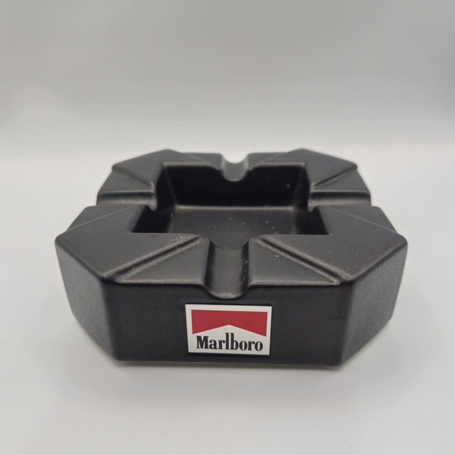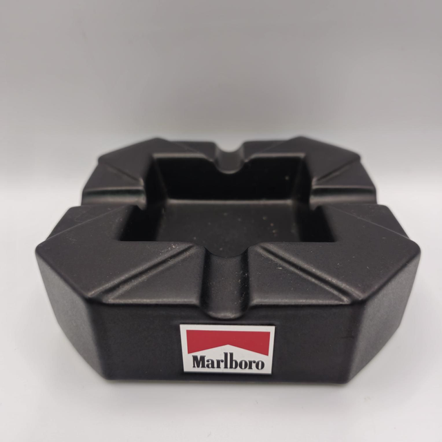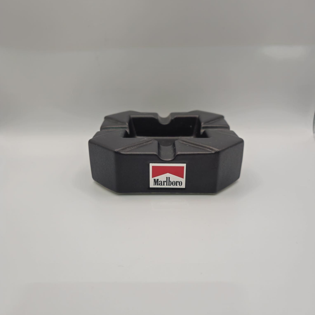​Cendrier de collection Marlboro, noir mat au design octogonal moderne. Il est en excellent état, non utilisé, et présente le logo emblématique de la marque .
