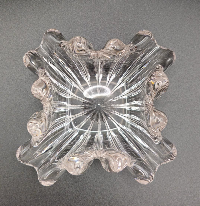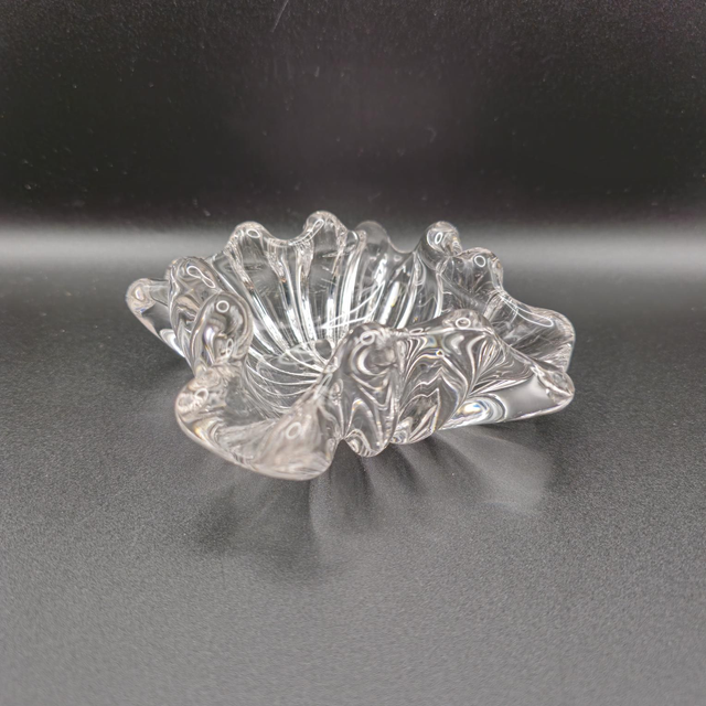 Superbe pièce décorative au design plissé et festonné, rappelant une fleur ou un coquillage. Sa base rayonnante capte magnifiquement la lumière. Idéale pour bijoux, bonbons, ou comme vide-poche raffiné. Style intemporel et chic